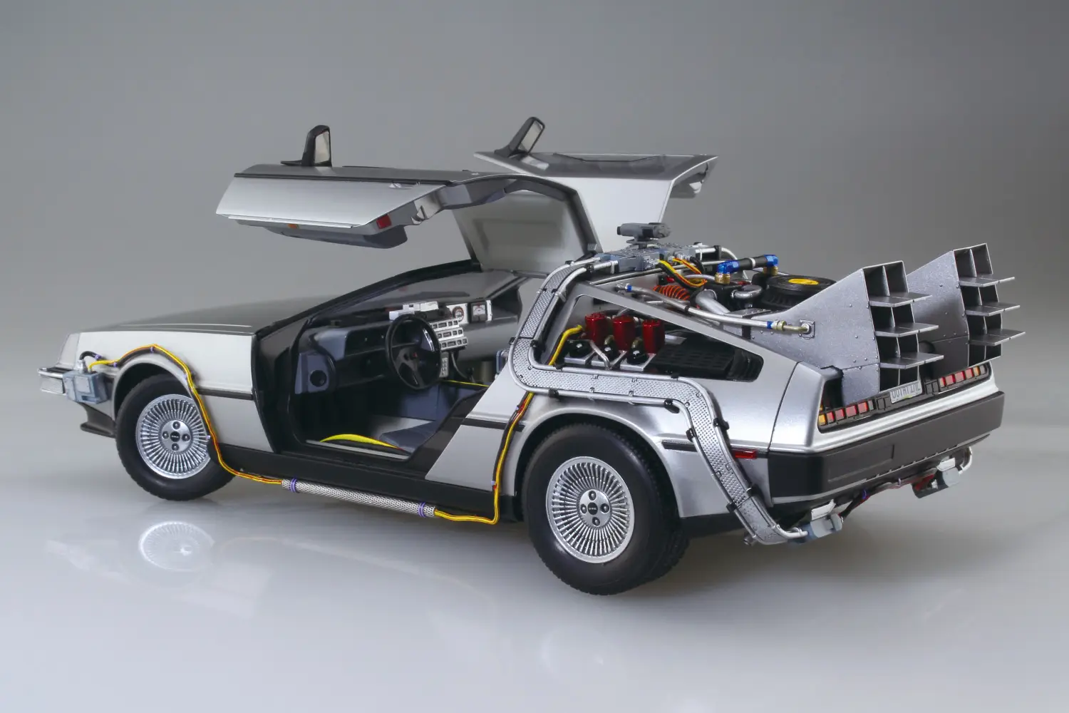 Aoshima’s fantastic 1/24-scale model kit of the time machine, as seen in 1985’s “Back to the Future,” is back! This kit features an accurately reproduced interior and exterior, along with the iconic gullwing doors that can be opened and closed after completion! The antenna that sent the lightning current from the clock tower to the dimensional transfer device at the end of the film can also be installed if you like. Bonus parts are included for the radio and video camera used in the experiment that took place on October 26, 1985! Flame effect parts that occurred during the time slip are also included; a set of detail-up parts is available as well. Order this legendary vehicle for your own collection today!