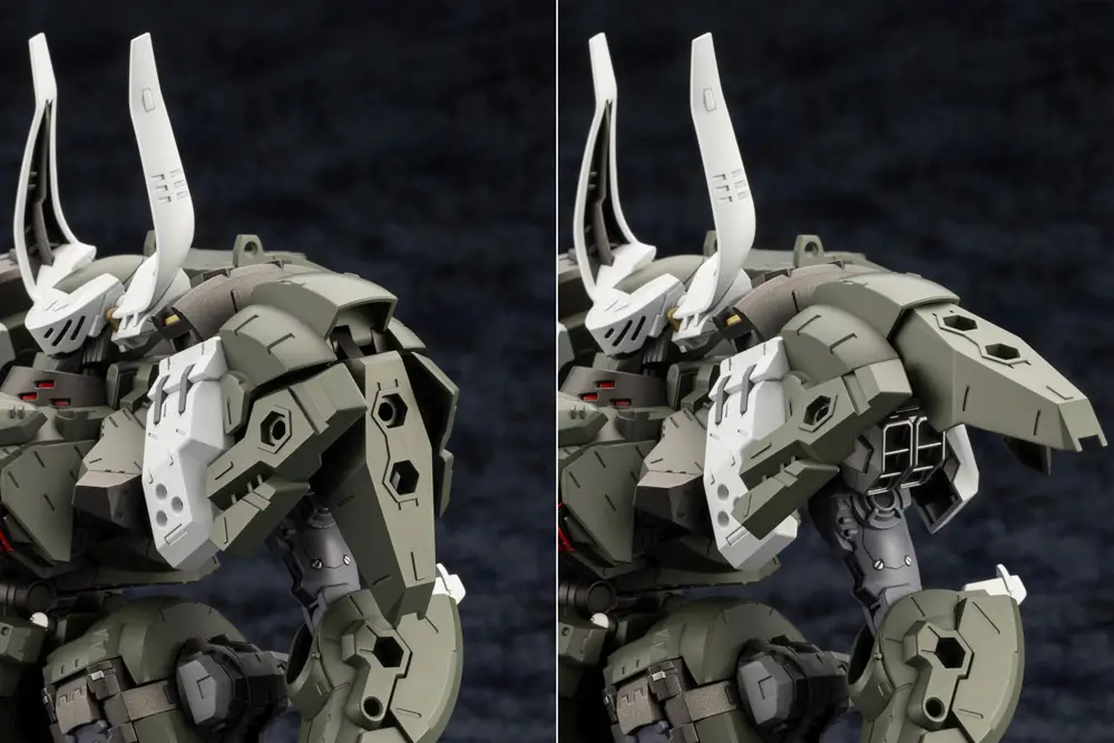 • The visor can be opened and closed with the 3mm pin connection used on the large horns on both sides of the head; the horns themselves can be moved widely, and the structure is convenient for customization.