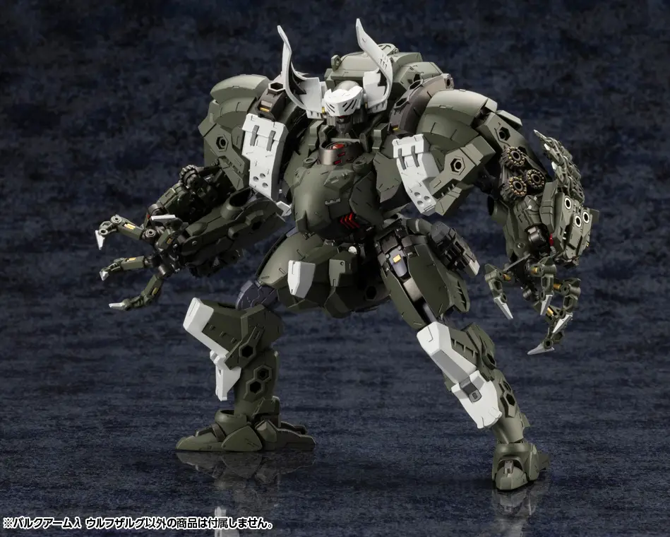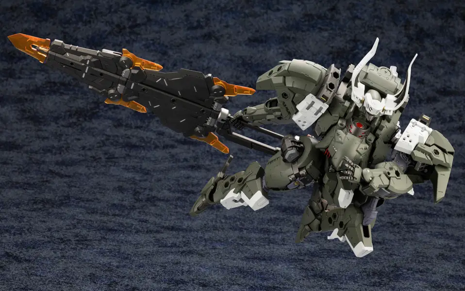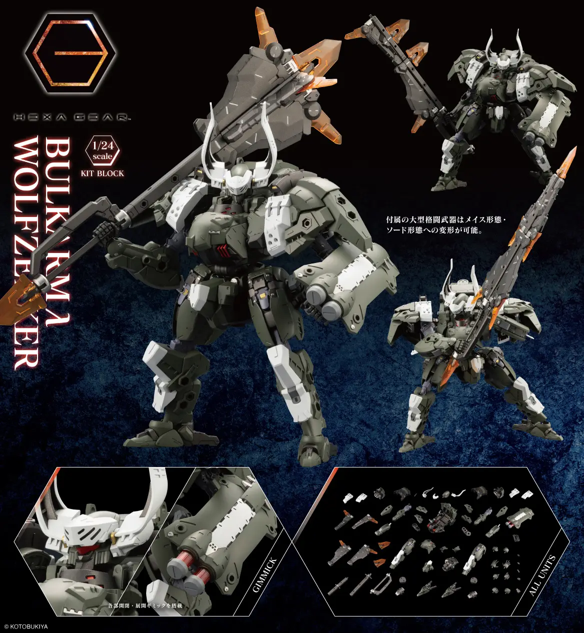 The Wolfzerker is an enhanced version of the latest “Hexa Gear” Bulkarm Lambda series, a descendant of the highly popular Bulkarm Alpha! With the concept of specializing in close combat, new armor has been added to almost the entire body, and an extra-large fighting weapon has been added. The original machine’s stylishness is still present, too!