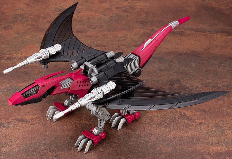 The hatch in the head cockpit can be opened and closed, and the included pilot figure can be placed inside; the Zoid core can be attached and detached. The retractable cutting wings can be deployed without hindering the movement of the tail. The intake and nozzle on the back can be replaced with a joint cap. The main Solar Energy Absorption Wing can be equipped with a 3mm axis at the top by replacing parts, and two different optional firearms are included. New decals with various emblems and caution marks are also included. Order this beautiful beast for your own collection today!