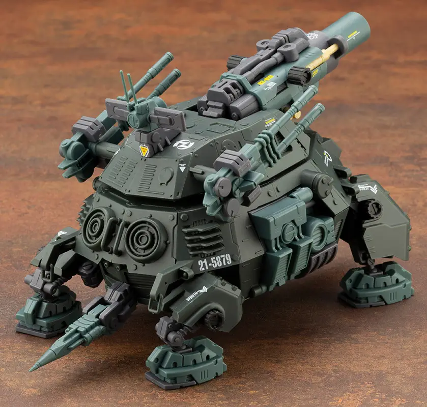 The RZ-013 Cannon Tortoise, the heavy artillery’s main force, returns to Kotobukiya’s second-generation “HMM Zoids” lineup in a new molding color! New decals are included, and the cockpit and other clear parts have been added as bonus parts in both clear orange and colorless clear molding, so they can be painted in your favorite clear color. Another bonus part is the same joint caps as are included with the Redler. The cockpit can be opened and closed to board a pilot figure; the Zoid core built into the torso can be attached and detached. An original “HMM”-series gimmick allows it to be transformed into the underwater diving mode! The liquid-cooled charged particle beam cannon and turret are movable; the turret can rotate a full 360 degrees. The body side hatch where the Zoid Core is stored can be opened and closed. You need this masterpiece machine in your collection — order yours today!