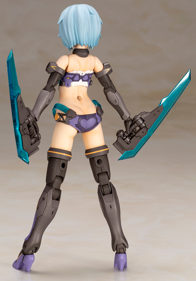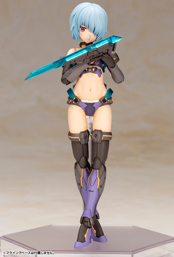 Kotobukiya’s amazing “Frame Arms Girl” model kit of Hreslvelgr in her bikini armor is back! She features new waist joints, improved shoulder joints and upper arms, and a new type of hip joint, too, all adding up to improved posability. She comes with five sets of hands and four interchangeable faces — three painted and one blank so you can create your own custom expression for her! Interchangeable bangs are also included. Two blades are included for weaponry, and of course she’s compatible with other “Frame Arms Girl” and “Frame Arms” armor and weapons, so you can easily create your own formidable female warrior. Order her for your own collection today!