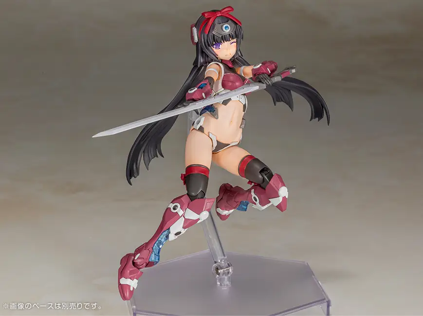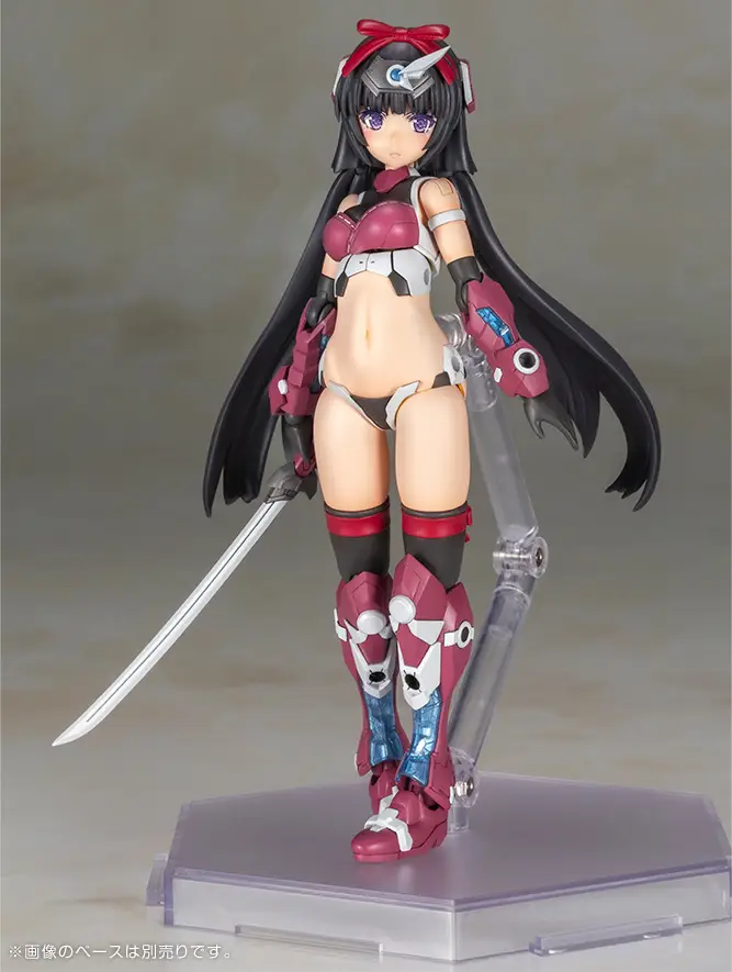 Frame Arms Girl Magasuki Ninja Version is getting a new “P3” (Pre-painted, Pre-assembled Plamodel) release from Kotobukiya! She’s based on the model kit version, designed by ToMo and Komatsu Eiji. This pre-painted, fully assembled model comes with three interchangeable tampo-printed faces: a normal face, a damaged expression, and a sad look. Two sets each of the odachi-type Tenkai and wakizashi-type Satsuga are included as exclusive weapons; they can be reproduced in their sheathed and unsheathed forms without the need for parts replacement. She has a wide range of motion for maximum action, too, especially in the hip joints, thighs, and skirt! Five interchangeable PVC ball-jointed hands are included for both the left and right side, so she can wield weapons from the existing “M.S.G” and “Frame Arms” series kits! Order her for your own collection today!