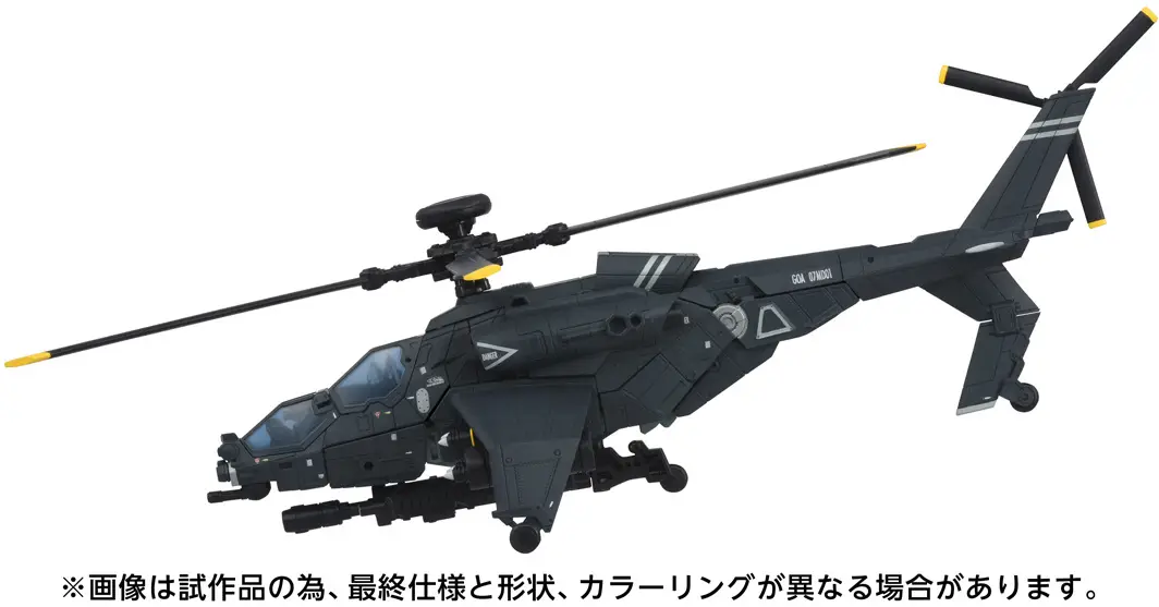 The Decepticon warrior Blackout is the second release. As a member of the Decepticons, Blackout works for their front organization, GOA, and transforms into an attack helicopter with large weapons. The vehicle and robot modes both feature numerous 3mm and 5mm joints, allowing for interchangeable accessory parts. You can choose weapons and equipment to suit the mission or situation!
